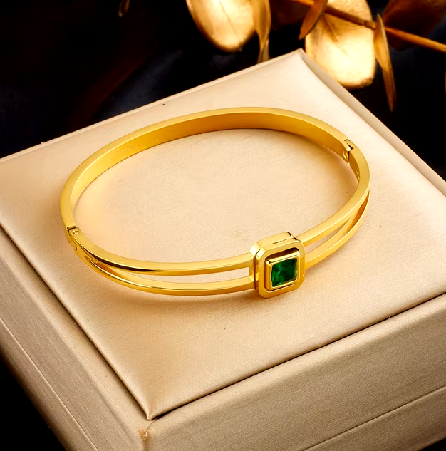 Браслеты DIEYURO из нержавеющей стали 316L с геометрическими линиями и зеленым цирконием, браслеты для женщин
