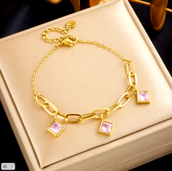 Женский браслет DIEYURO из нержавеющей стали 316L, с шармами и цепочками розовый